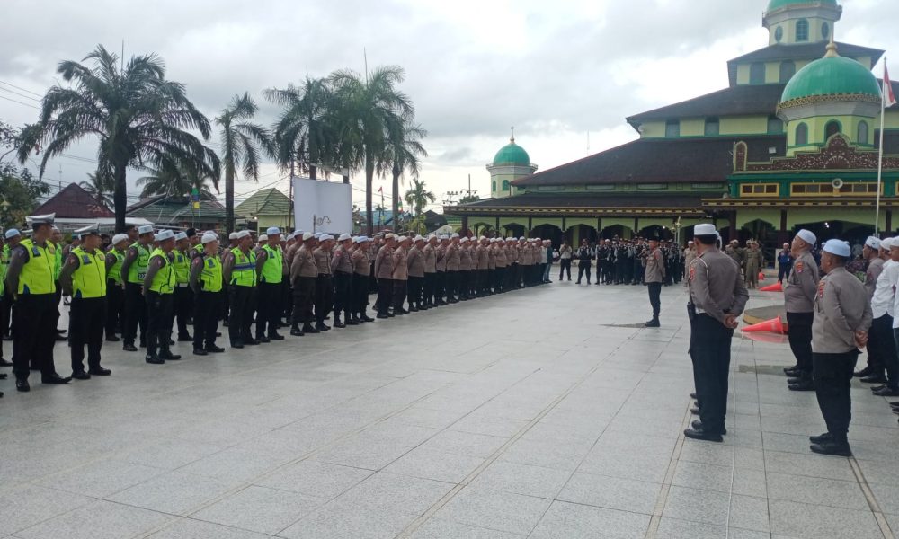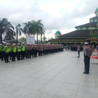 Apel persiapan pengamanan dilaksanakan di halaman Masjid Jami Sungai Jingah Banjarmasin, Kamis (30/3/2023) sore, dipimpin langsung Kapolresta Banjarmasin Kombes Pol Sabana Atmojo.